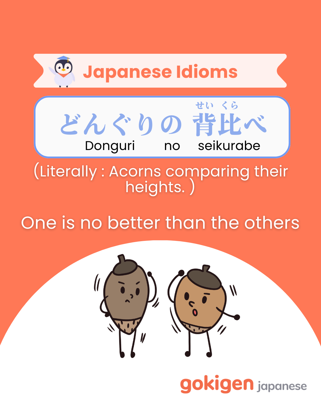 [Japanese idioms] どんぐりの背比べ (donguri no seikurabe) – One is no better than the others