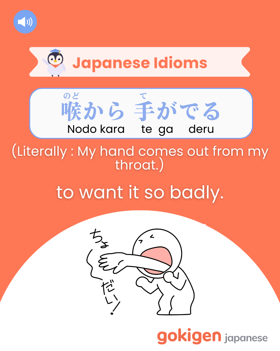 [Japanese idioms] 喉から手が出る (nodo kara te ga deru) – to want it so badly