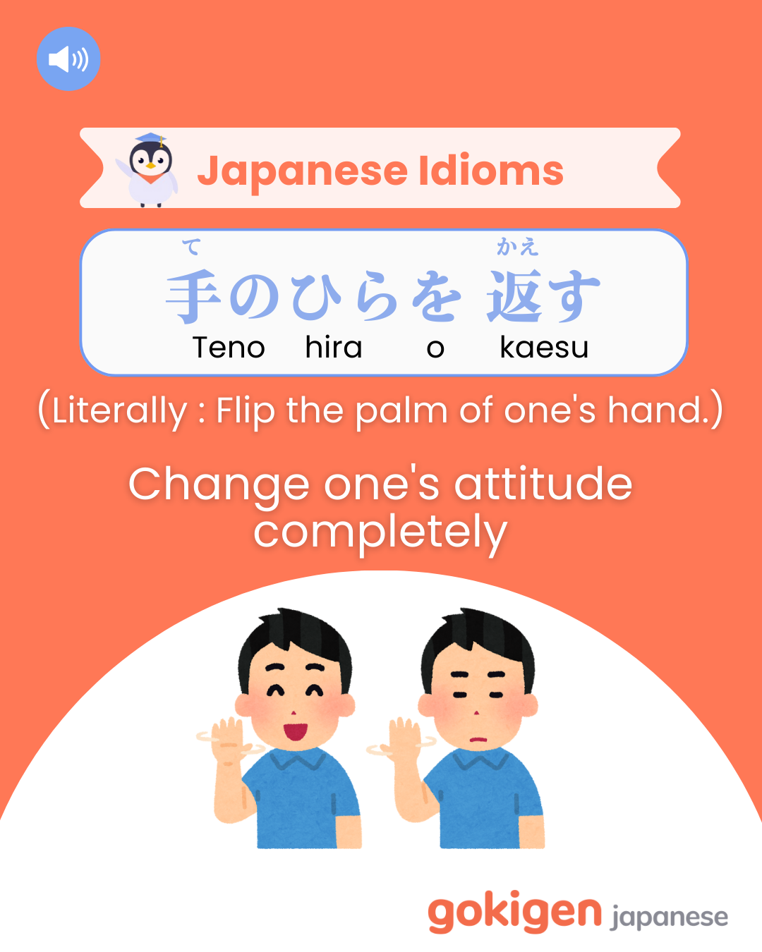 [Japanese idioms] 手のひらを返す (tenohira o kaesu) – Change one’s attitude completely
