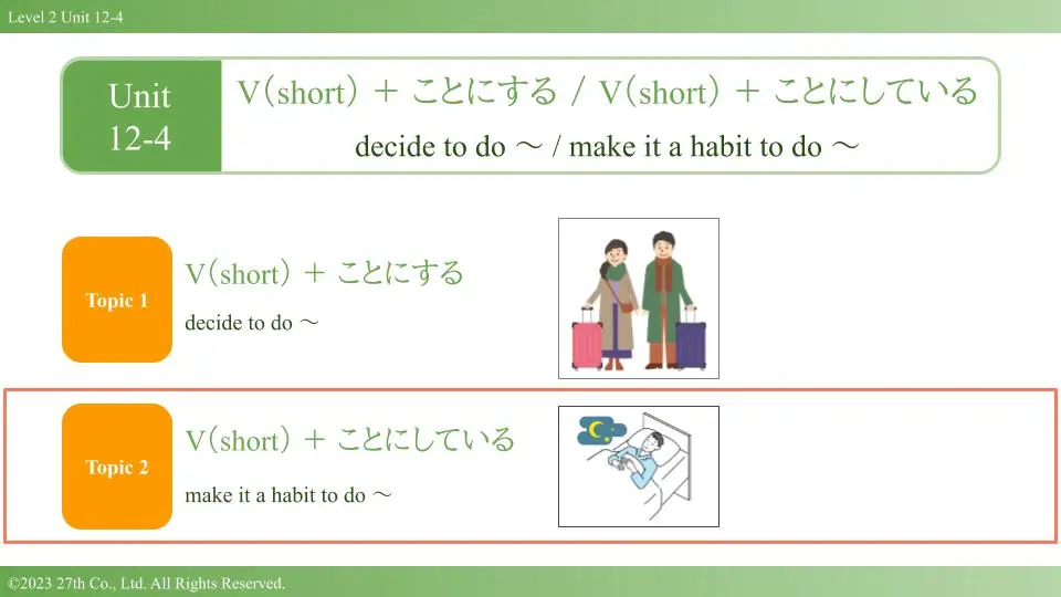 Introduction Do you know how to express ‘‘do as a regular practice’’? Use V (short) + ことにしている to say you make something a habit/rule for yourself.... Read more.