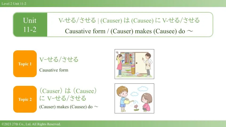 Japanese Causative: V-せる/させる & “(Causer) は (Causee) に V-せる/させる”