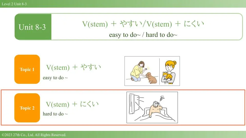 Introduction Want to say “These sneakers are hard to put on” or “That company was hard to work at”? Use V-stem + にくい, a handy pattern that describes... Read more.